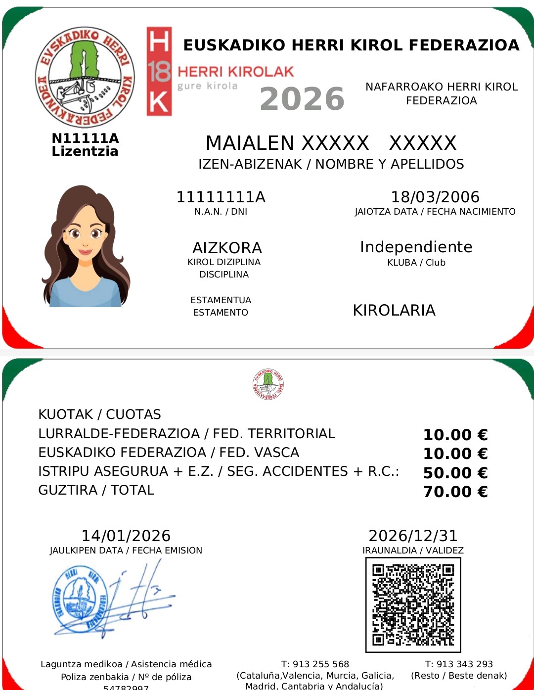 Herri kiroletako edozein modalitateetan parte hartu ahal izateko lehenik eta behin federatu egin behar da. Lizentzia urte hasieran egitea gomendatzen dugu, izan ere, urtarriletik abendura bitarteko iraupena izaten baitu.
